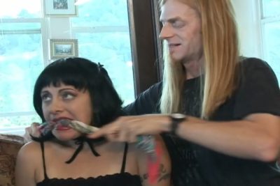 Chloe Night and Latina Dianni Ontufay are alredy bound and cleave-gagged together on the sofa with their captor, Isaac W. In walks Loren Chance on the scene, shocked to see her girlfriends in their bondage predicament. Isaac whips out his gun and orders Loren to have a seat next to her bound and gagged pals. Out comes more rope and another gag for Loren. She’s tied and gagged on-screen, and everyone’s boobies are exposed, so we have a topless tied & gagged threesome! Two are in heels, Chloe is barefoot. Loren is in a skirt, Dianni in jeans, Chloe in slacks.