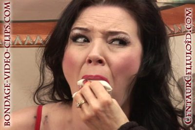 Classic Bondage from 2007 Re-Edited from the Source Tape! Highest Quality, Color & Sound! This is some great vintage footage of Anastasia Pierce from back in the days when she was a superstar, not yet a legend. We begin with Anastasia Pierce having breakfast, barefoot in her nightie, when Natasha Flade storms in with a gun and some stern orders. She orders Anastasia to the floor and binds her wrists behind her. Then she forces a huge cloth into Anastasia’s mouth and ties it tightly into place with a thin cleave-gag in a really great gagging scene.