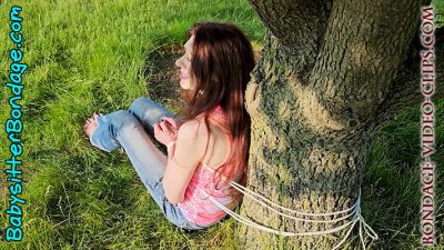 You tell her to go over to the tree and sit down. Aunt Natasha complies, all smiles. She asks if you want to tie her hands. Yes, you do! So she holds them out in front for you. Now your Aunt is bound hand and foot in the grass, ropes about her chest to keep her tethered to the tree. Her bare feet and soles are sticking straight out at you. Natasha tests her bonds. “Wow!” she exclaims. “You must be practicing. These ropes are really tight!” She struggles playfully, pretending to be a kidnapped damsel, calling for help, wiggling her feet. Wonderful! She giggles sometimes, too. Aunt Natasha is having so much fun!