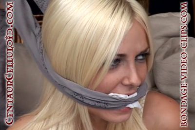 - Blonde bombshell Connie Sims is sleeping in bed when Natasha Flade barges in and handgags her! She’s pissed off because her dog got into Connie’s pot garden and cost her $1000 in vet bills! Connie ends up barefoot hogtied (elbow ties) and knotted cleave-gagged. Natasha rips her robe open and leaves Connie tied up nude while Natasha searches for more ways to torment her!
