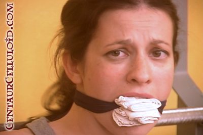 Classic Bondage Video from 2013! This video clip features two scenes of the young Chastity Rhoades from Centaur’s early days! In the first scene, we have naturally busty Chastity Rhoades bound topless to a weight bench and stuffer gagged. She’s wearing her workout clothes (tank, short and tennis shoes). Her arms are tide spread to the barbell, her ankles are tied apart straddling the seat. Chastity has beautiful damsel eyes and her large breasts jiggle as she struggles. She’s a treat to watch while bound and gagged on that weight bench!