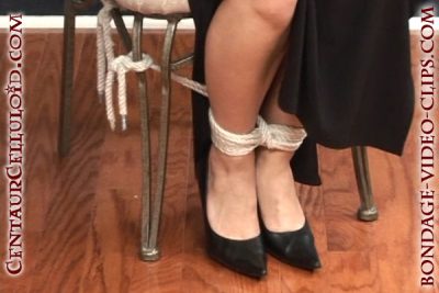 CLASSIC BONDAGE FROM 2007 RE-EDITED! The judge’s pretty daughter, blonde Daphne Paige, has been kidnapped by Natasha Flade for her plot to spring her man from jail! She marches Daphne (wearing a skirt and high heels) into the room, her hands already tied up behind her. Daphne is forced to a chair to a chair and plopped down on it. Natasha plans to hold the poor girl hostage until the judge sets her boyfriend free from the pen!