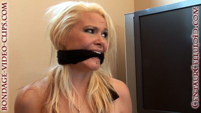 Isaac cleave-gags his captive with two wraps of a fuzzy scarf. With Kordelia cleave-gagged, he can now use BOTH hands in groping her huge tits! But she’s still a little noisy, so she spends more time handgagged atop her gagged lips as the groping continues.