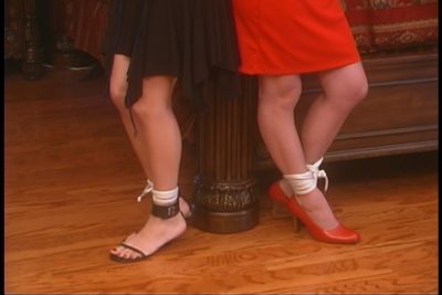 Latina Dianni and 19 year old blonde Bridgette are bound standing to a bedpost, in dresses and heels, topless! They struggle and moan through their huge packing gags, trying to escape their bondage. Fab struggling video!