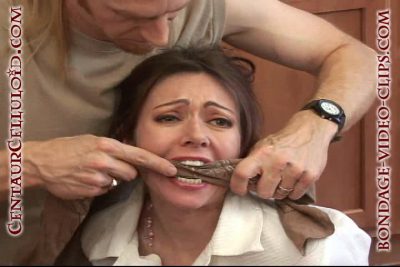 But she won’t stop with her bitching and whining, so he cleave gags her with his sweat rag from his head. A mouthful of his brow stink might teach her some manners! Then he pulls her tits out just for his enjoyment, groping, fondling and sucking on her nipples. It’s the best form of payment there is! He tells her he’s going to take some photos of her boobs and post them on the internet, too! He laughs as he pulls his phone camera out and snaps some pics. “I don’t think I’ll be coming back here again,” he says as he collects his tools and exits, leaving the snooty Natasha whimpering on the floor, not able to move very well at all in that strict tape bondage he’s left her in! Maybe she’ll be nicer to the plumber next time!