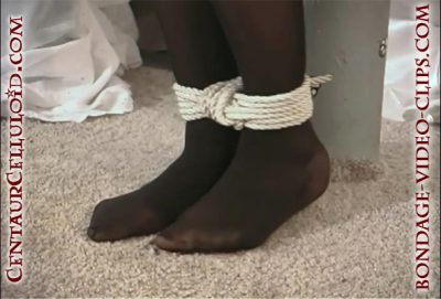 Great closeups of Natasha’s pantyhose clad feet and ballgagged face! This classic bondage video clip makes a great addition to any collection!