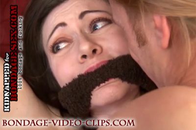But Isaac persists in his advances. When it’s clear that Natasha isn’t going to put out and starts getting rather loud about it, Isaac jumps on top of her. He handgags Natasha while he threatens her. Natasha is scared now, especially when Isaac pulls out some rope. He didn’t want to have to resort to this, but it’s clear Natasha won’t cooperative as he had hoped. (And he rather likes fucking bound and gagged women, anyway…) So he ties her to the bed, Eiffel tower style. Then he takes off his robe sash and uses it to cleave gag her!