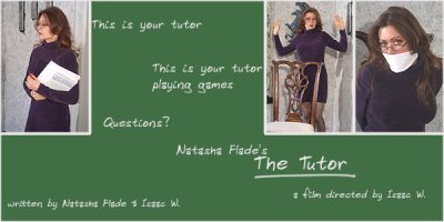 BABYSITTER BONDAGE and MILF BONDAGE FEATURE MOVIE DOWNLOAD! Natasha Flade stars as Miss Bentley, a babysitter and also a private tutor. Miss Bentley is always getting herself into trouble with the kids who want to play various bondage games. Maybe that’s because she’s so sexy for a teacher, wearing short dresses and skirts with pantyhose and heels. Miss Bentley wants her students to do well after all. So Natasha lets her student, Eric, play a bondage game with her every time he gets a 100 on a quiz or test. Natasha is tied to a chair in her sweater turtleneck dress, pantyhose and heels and is over the mouth gagged with a white bandanna!