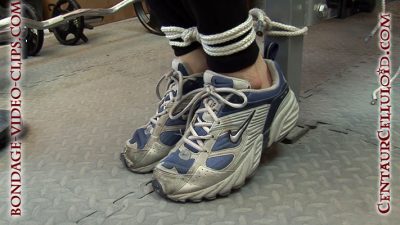 NOW IN FULL HD! Candle Boxxx was working out with her personal trainer Natasha Flade in their fitness wear and tennis shoes (Candle has Keds!) when some dude barges in with a gun! He holds them up and says that trainer Natasha Flade has been ripping off his overweight brother for years and he’s still fat and he’s here to get his brother’s money back! Natasha says that’s not possible, so the angry intruder, Isaac, starts roping up the sexy trainer and her big-boobed client Candle Boxxx! Both are forced to sit on the weight bench as he ties their hands behind them.