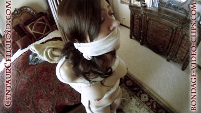 You are the intruder in this POV bondage home invasion video! Shot entirely with a hero-cam for a truly immersive bondage experience! Originally shot in 2010, it’s been re-edited from the original source tapes in all its FULL HD glory! The video begins with Natasha Flade in her bedroom, barefoot in her white robe. You come in and hold her up at gunpoint! She puts her hands up and obeys your orders! You make her stand up against the bed post, then you tie her her strictly to it: hands tied behind the post, ankles bound and attached to the post, her robe sash tied about her waist to keep her secured.