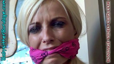 But when you guys put over the idea that she needs to be gagged, too, Danielle thinks this is a bit too much! She resists at first, but then relents after making you again promise to not tell mom about her smoking! The deal is made and Danielle winds up cleave-gagged with a pink bandanna. She struggles for you two, all tied up on that stool. The closeups of her bare feet and soles are really great! Her boobs are even better! They barely stay in her top! You’re in heaven watching your smoking (hot!) sister as she pretends to be a ransomed damsel for your tie-up game. She’s wiggling all around with lots of gag talk.