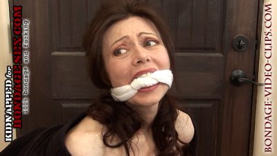But after he shoots his manjuice in her mouth, Natasha’s informed he has no intention of letting her go after all! She begs him to please keep his word, but gets handgagged instead. The abductor leaves the room to find something to keep that mouth of hers shut. Natasha is left chairtied barefoot in her bath robe, looking around anxiously for her captor’s return. Maybe he won’t come back with a gag at all! Maybe he’ll just gag her with his big dick again!